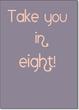 Motiv: Typografie - Rosa Schriftzug auf Violett - Denglisch-Spruch "Take you in eight!" Serie: "Engleutsch for Oncatcher" von tom bäcker - a-point-of-view Klassisches Postkartenformat 14,8x10,2cm Stabiler Postkarten-Karton